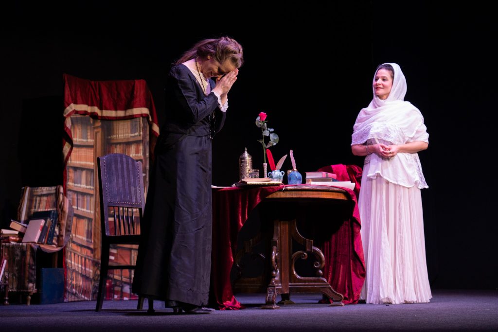 Im Mittelpunkt der Konversation steht die Dichterin Tahéreh, die im Persien des 19. Jahrhunderts wirkte. Als erste Frau legte sie öffentlich den Schleier als Symbol jahrhundertelanger Unterdrückung ab. In ihrem kurzen Leben trat sie mutig und kompromisslos für Gleichwertigkeit der Geschlechter, Gerechtigkeit sowie Bildung für Mädchen ein. In brillanter Regie von Nicole Fendesack zeigten Elsa Schweiger als „die göttliche Schauspielerin“ Sarah Bernhardt und Nena Eigner als die Wiener Frauenrechtlerin Marianne Hainisch eindrucksvoll, wofür es sich zu kämpfen lohnt. Im berührenden Theaterstück bot Isma Forghani Einblicke in das Leben der Dichterin Táhereh, die im Persien des 19. Jahrhunderts wirkte. Als erste Frau legte sie öffentlich den Schleier als Symbol jahrhundertelanger Unterdrückung ab und verlieh damit dem Gedanken der Gleichwertigkeit der Geschlechter eine kraftvolle Stimme.